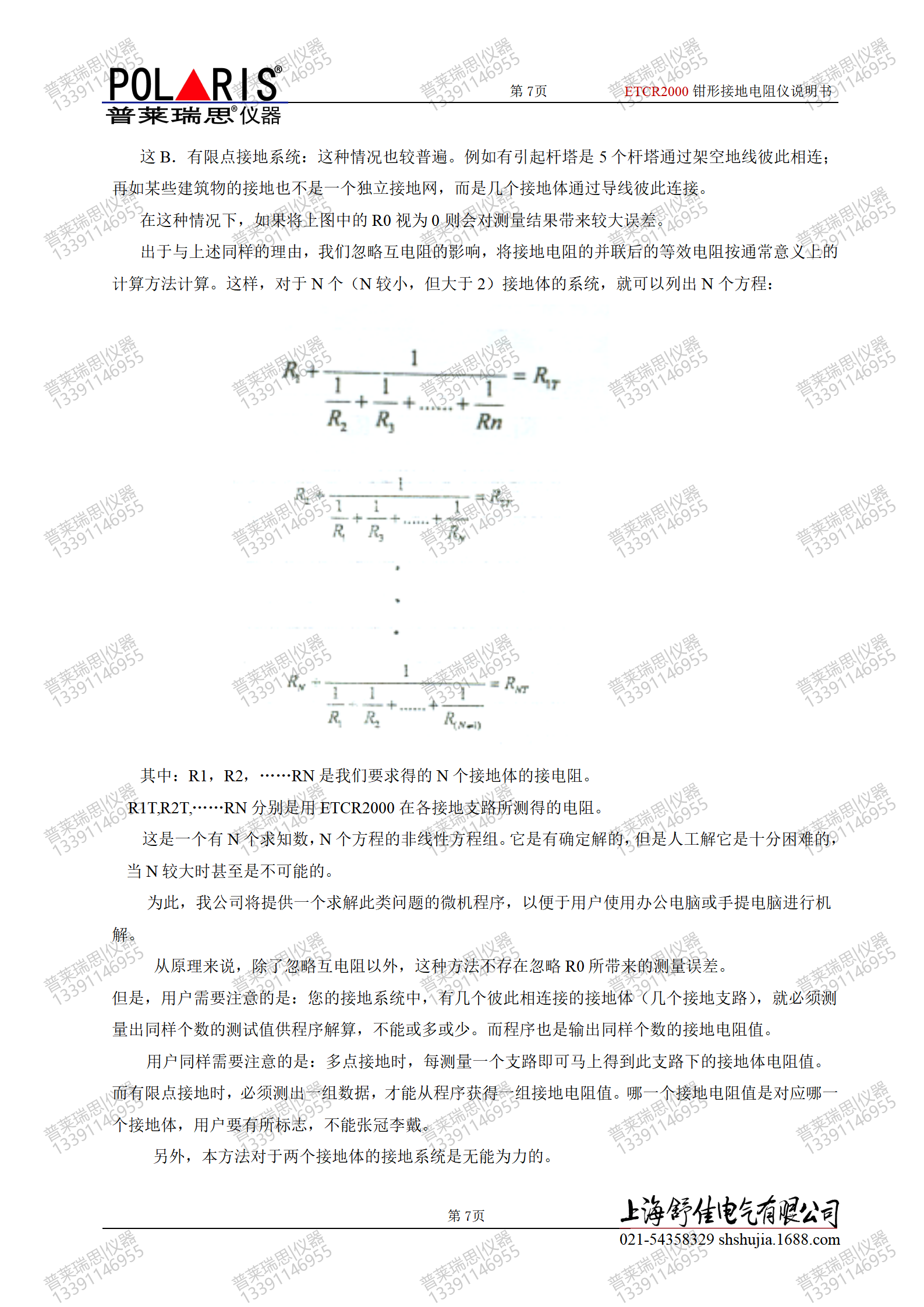 而使用ETCR2000时,就没有这些限制。虽然,从测量原理来说,ETCR2000必须用于有接地环路的情况下,但是只要用户能有效地利用您的周围环境,ETCR2000完全可以测量单点接地系统,其测量方法可参考本文明书的八、c节。